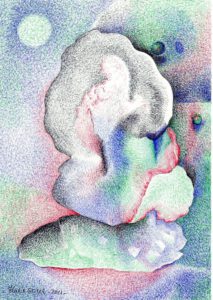 “Renkli Tükenmez Kalemle Çizdiğim Resimler” serisinin erken dönem örneklerinden biri olan bu eser, malzemenin sadeliğiyle düşsel dünyanın karmaşıklığını ustalıkla harmanlanıp biçimsel soyutlama hem de duygusal derinlik açısından teknik kısıtlılığı olan bir malzemeyle yüksek plastik değerler elde edilmesi açısından resim sanatı bağlamında dikkat çekici bir örnek olarak yaptığım resimlerimdendir.