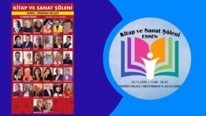 Almanya’nın Essen şehrinde düzenlenecek olan: “Kitap ve Sanat Şöleni” 05.10.2025 tarihinde,11:00 – 20 – 00 saatleri arasında, Prenses Place / Westendhof 4, 45145 Essen’de gerçekleştirilecek.