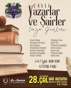 Uluslararası 28. Çal Bağ Bozumu Kültür ve Sanat Festivali – Çallı Yazarlar ve Şairler İmza Günleri, 5-6-7 Eylül tarihlerinde, 10:00 – 19:00 saatleri arasında, ATATÜRK Parkı’nda gerçekleştirilecek.